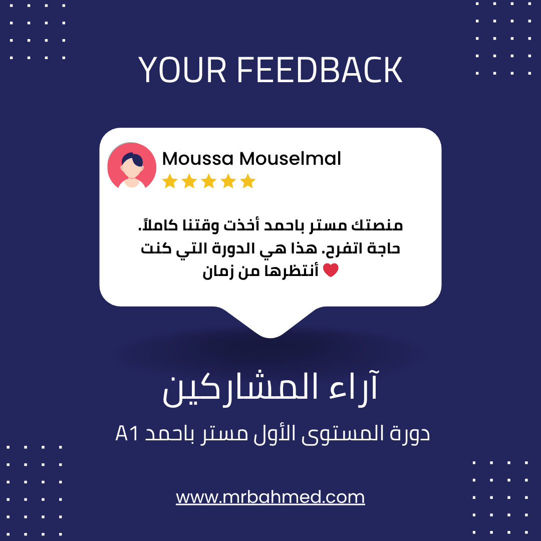 استمتع بتعلم أهم الجمل والعبارات من خلال أكثر المواقف اليومية التي نعيشها بالإضافة إلى تطوير مهارة الاستماع والقراءة والكتابة بشكل رائع مع دورة الأستاذ باحمد للمبتدئين.