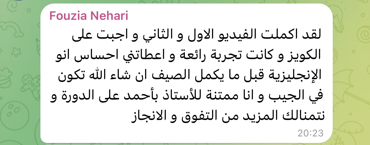 • النتائج المضمونة: إذا كنت ترغب في تحسين مهاراتك اللغوية بسرعة، فهذه الدورة هي الخيار المثالي. ستحصل على تقدم ملحوظ من أول درس!